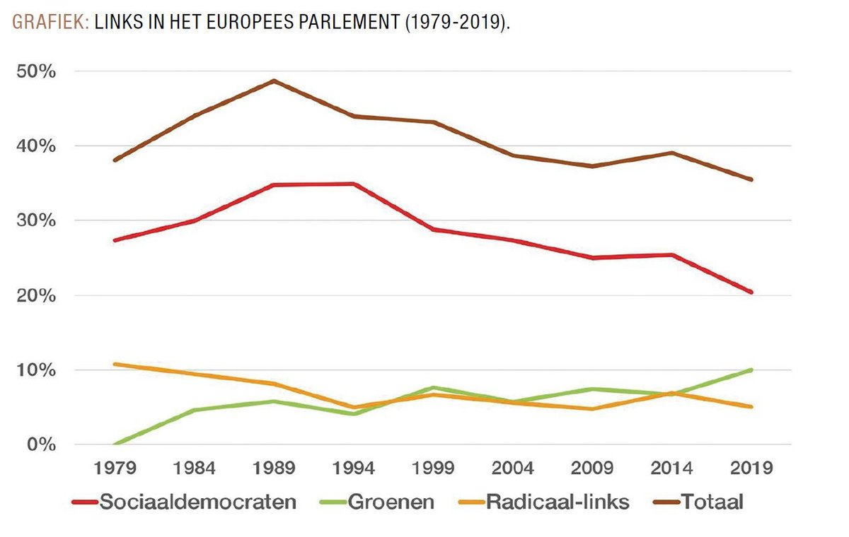 Relatief gesproken deed geen enkele strekking in het Europees Parlement het zo slecht als radicaal-links. Hoewel peilingen haar een jaar voor de verkiezingen soms de vierde plek toebedeelden, en ook in de directe aanloop naar 26 mei een kleine winst verwacht werd, raakte GUE/NGL een kwart van haar 52 zitjes kwijt. Een ronduit belabberd resultaat. De eerste Belgische Marxist in het Europees Parlement, Marc Botenga, ziet de helft van zijn Spaanse en al zijn Italiaanse collega's verdwijnen, terwijl de Nederlandse, Ierse, en Tsjechische delegaties van 3 naar 1 vertegenwoordiger terugvielen. Ook Jean-Luc Mélenchon en La France Insoumisebleven ver onder de verwachtingen. De Insoumishadden voor de Europese verkiezingen de lat op 11% gelegd, een heel eindje onder Mélenchons persoonlijk resultaat bij de presidentsverkiezingen. Maar met nauwelijks iets meer dan 6% werd het zelfs ondanks de lage verwachtingen een enorme sisser. Yanis Varoufakis en zijn Europese Lente bleven in Duitsland ver onder de drempel (die minder dan een procent bedraagt), en kwamen in Griekenland enkele tientallen stemmen tekort voor een zitje. Geen vertegenwoordiging voor DiEM25 in het Europees Parlement.