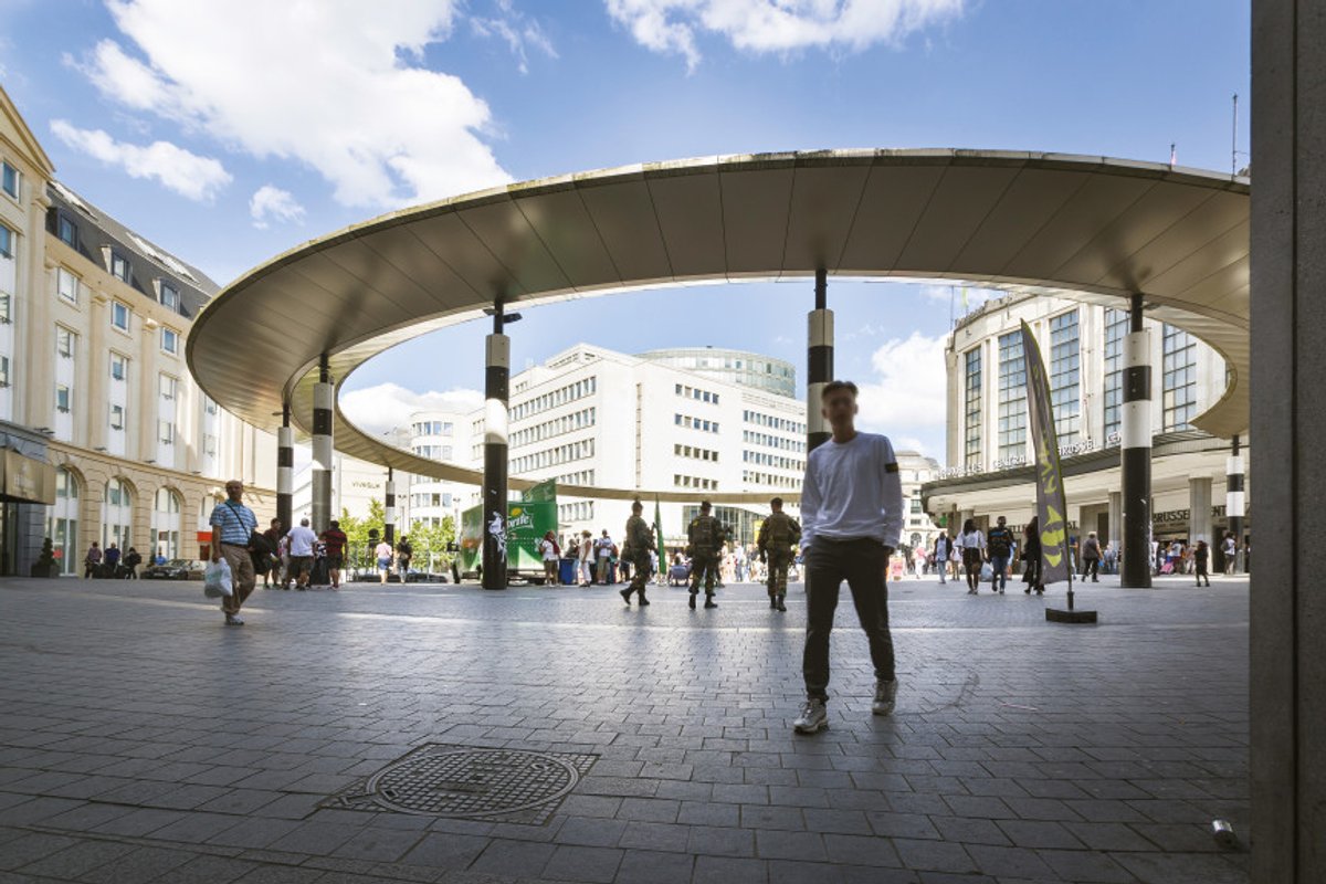 Waar vinden we meer open ruimte in Brussel? We vinden die door stedenbouwkundige regels op te leggen voor het behoud van waterdoorlaatbare en groene open ruimte op privéterreinen en door auto's weg te halen uit het publieke domein. Volgens het Brussels Donut Portrait3 is maar 39% van de openbare wegen gereserveerd voor voetgangers en fietsers. De auto neemt een veel te groot deel van onze openbare ruimte in beslag, ten nadele van andere vervoermiddelen, maar ook ten nadele van een mogelijks grotere leefkwaliteit in deze ruimte. Daarom stelde de expertencommissie Good Living voor om het openbaar domein voor gemotoriseerde voertuigen (exclusief openbaar vervoer), met inbegrip van parkeerplaatsen, drastisch te verkleinen tot maximaal 50% van de straatbreedte, en de teruggewonnen ruimte groen en doorlaatbaar te maken. Deze onbebouwde, groene en doorlaatbare ruimte is cruciaal voor een goede werking van blauw-groene netwerken die de noodzakelijke verkoeling bieden. In de zomer liggen de temperaturen in het centrum van Brussel gemiddeld 3°C hoger dan op het platteland, en zo ontstaan hitte-eilanden. De waterondoorlaatbaarheid, de verharding van open ruimtes en de gebouwen zijn verantwoordelijk daarvoor. Met de klimaatverandering heeft dit verschijnsel een steeds grotere impact op comfort, levenskwaliteit en gezondheid. Daarbovenop ontstaat een vicieuze cirkel door het toenemend gebruik van airconditioning, dat op zijn beurt de buitenlucht opwarmt. Het goede nieuws is dat bomen ons kunnen redden. Ze koelen de lucht door beschaduwing (hoe minder zonlicht op gebouwen en trottoirs valt, des te minder energie er wordt geabsorbeerd en opnieuw uitgestraald in de lucht) en door transpiratiekoeling (het verdampen van de waterdruppels uit de bladeren heeft een verkoelend effect op de omringende lucht).