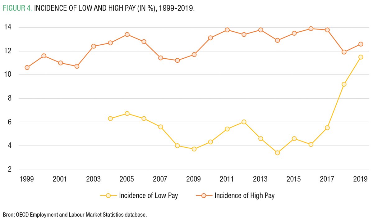 Er is één datareeks die wijst op toenemende ongelijkheid: de Employment and Labour Market Statistics database van de OESO.
