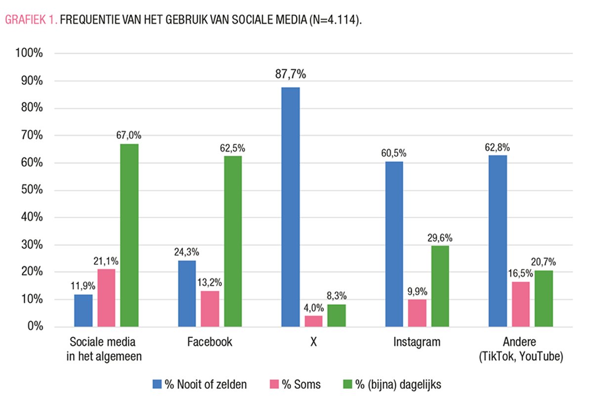 Politiek gebruik van sociale media, bijvoorbeeld om anderen te mobiliseren (Boulianne et al., 2020), komt minder vaak voor.1 Over het algemeen hebben de meeste mensen de neiging om zich te onthouden van interactie met of deelname aan politieke discussies online. Dit kan deels te wijten zijn aan de negatieve en soms agressieve toon die op sociale media te vinden is en de aanwezigheid van desinformatie (Madsen, 2019). De verschillende bestaande platformen hebben in dit opzicht nogal uiteenlopende reputaties. X (voorheen Twitter) wordt vaak beschouwd als bijzonder vatbaar voor ‘negativiteit’ (Yarchi et al., 2021), terwijl Instagram en TikTok lichtere, maar ook minder ‘gepolitiseerde’ inhoud zouden hosten. Hoe ziet dit er dan uit in België?