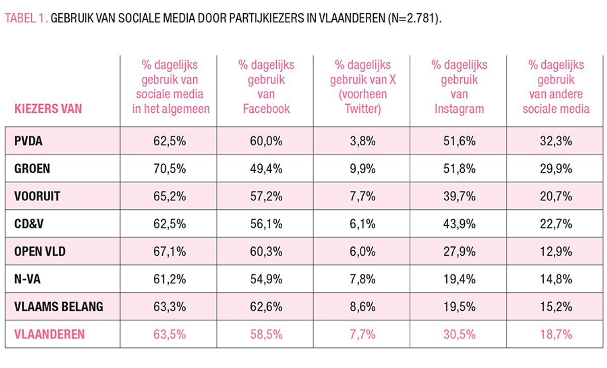 Groen- en Vlaams Belang-kiezers geven verhoudingsgewijs minder vaak aan dagelijks gebruik te maken van traditionele media.
