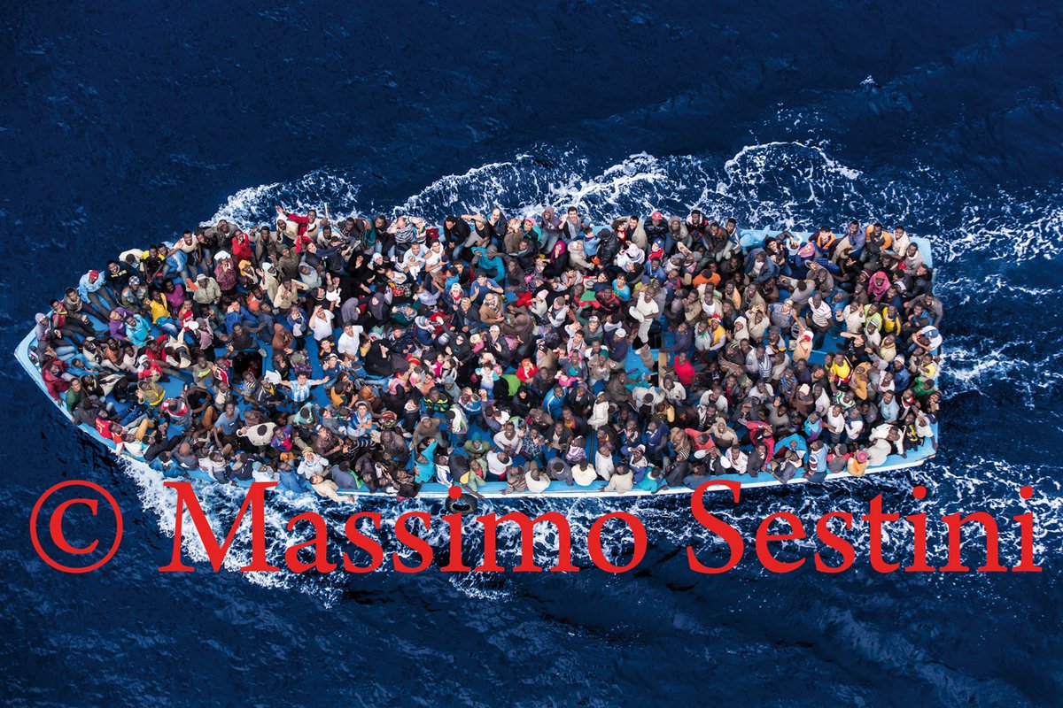 De Middellandse Zee wordt stilaan het grootste massagraf van onze eeuw. Met de regelmaat van de klok lezen we over ‘honderden doden’ na een zoveelste gekapseisde vluchtelingenboot. Volgens het Missing Migrants Project haalde in de maand mei zo’n 12.460 migranten toch de kusten van Italië. Fotograaf Massimo Sestini vergezelde verscheidene keren de Italiaanse luchtmacht bij haar reddingsoperaties. Zijn gekende luchtfoto’s geven een zeldzame glimp van de gevaarlijke omstandigheden waarin mannen, vrouwen en kinderen de gevaarlijke oversteek maken. Met het beeld op bladzijde 32 won hij de tweede prijs van de “World Press Photo of the Year 2015 - General News”, ’s werelds meest prestigieuze fotoprijs.