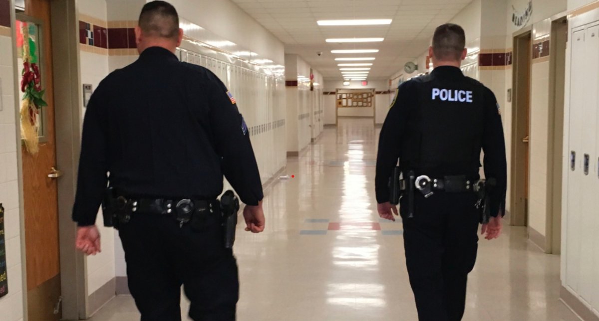Was het daar maar bij gebleven. Niet dat onze zoon in herhaling verviel. Maar op de chatlijn van de school kletste hij zijn mond voorbij. Nu werd die chatlijn gecontroleerd door de zogeheten School Resource Officer (SRO), met andere woorden, de politieagent van de school. (Sinds de jaren 1990 hebben steeds meer scholen in de VS een residente cop.) Die man zag prompt een missie voor zich: de plaatselijke gemeenschap beschermen, want de bevoegde instanties hadden dat, in zijn ogen, schuldig nagelaten.