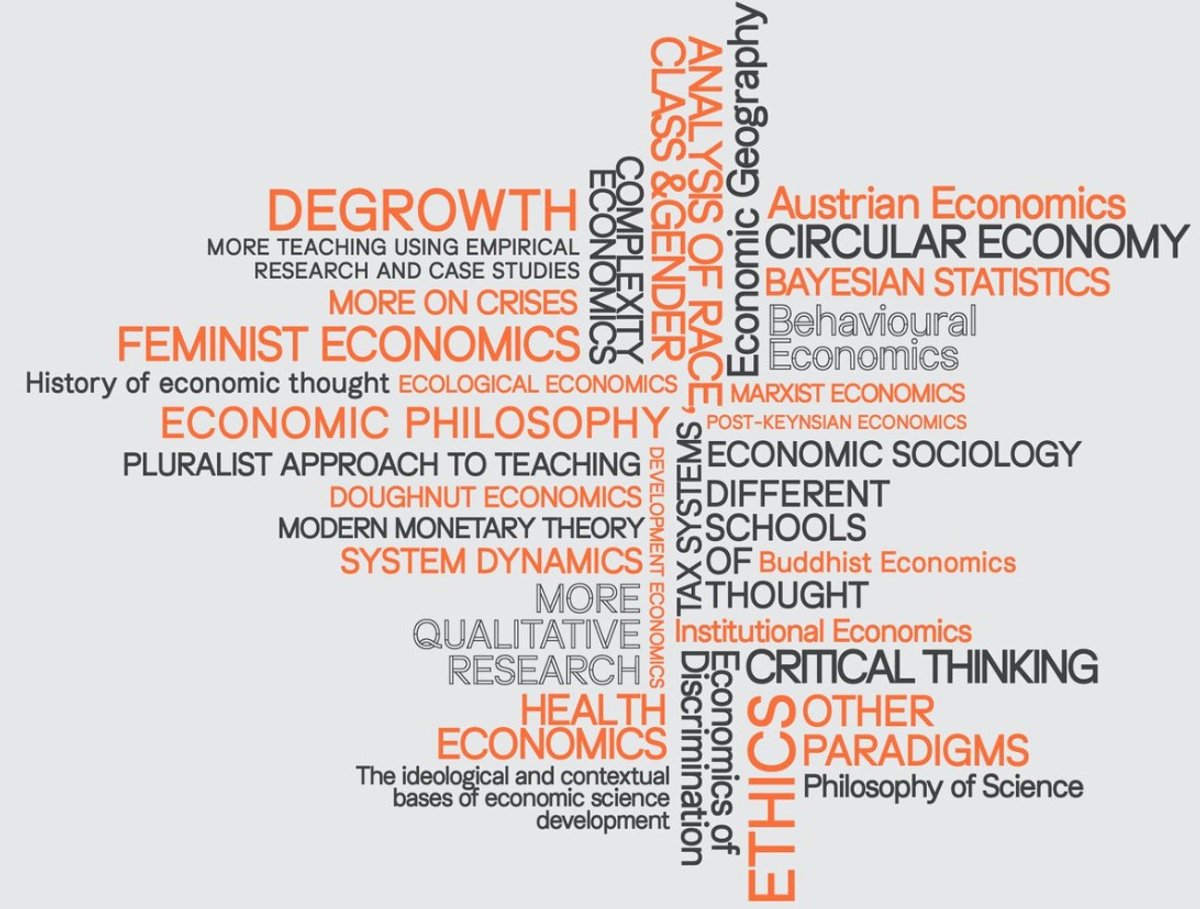 Verder wordt de economie in vele basiscursussen voorgesteld als een harde wetenschap, vrij van waarden – iets wat uiteraard niet strookt met de realiteit. Er is een fundamenteel verschil tussen de zwaartekracht en bijvoorbeeld het verband tussen outputgroei en tewerkstelling. Het is dan ook belangrijk dat dit voldoende benadrukt wordt door docenten, en dat er voldoende aandacht is voor de verschillende stromingen binnen het economische denken en de pre-analytische visies waarop deze geënt zijn. Indien dit niet of onvoldoende gebeurt, kan de dominantie van de neoklassieke visie in basishandboeken de foutieve perceptie wekken dat de beleidsaanbevelingen die eruit voortvloeien 'evidence-based' en dus neutraal zijn. Zo beschouwen handboeken Macro-economie minimuminkomens, bescherming van werknemers en werkloosheidsuitkeringen vandaag nog vaak als arbeidsmarktrigiditeiten, die nefast zijn voor de tewerkstelling en de output in een economie, en dit zonder bijkomende kadering of aandacht voor verdelingseffecten of de verhouding tussen de verloning van arbeid en kapitaal. Het onvoldoende kaderen van dergelijke beleidsaanbevelingen is intellectueel oneerlijk, en economiestudenten vandaag verdienen beter. Een goed inzicht in de afruil waarmee beleidsmakers geconfronteerd worden, is hierbij cruciaal. Deze afruil is onvermijdelijk normatief, en het is belangrijk dat studenten inzien dat het bepleiten van het (neoklassieke) status quo even ideologisch is als het bepleiten van meer progressieve ideeën zoals een arbeidsduurverkorting.