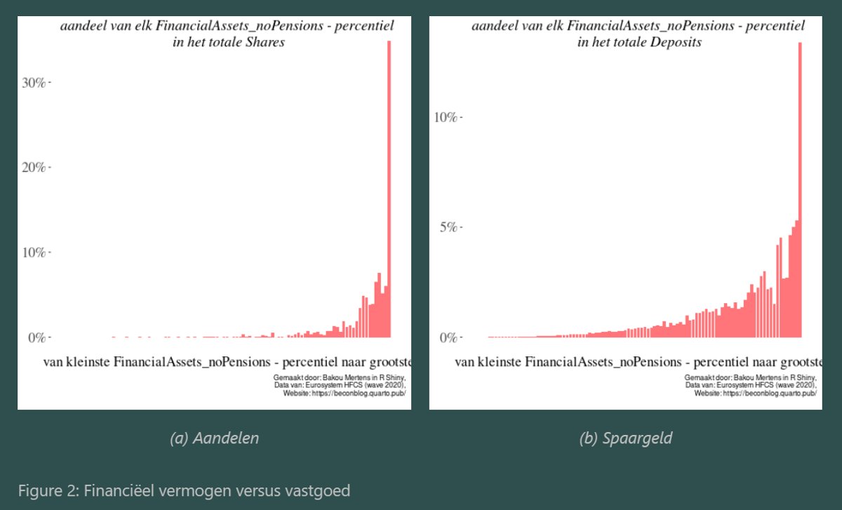We zullen in andere BEconBlogs dieper ingaan op deze data, ze eventueel vergelijken met de vorige twee golven (2014 en 2017) en ze gebruiken om argumenten kracht bij te zetten, maar laten de lezer nu zelf aan de slag gaan. Visualiseer zelf de verschillende vormen van ongelijkheid in België in de online tool van de BEconBlog, download de gewenste grafieken en deel ze om zo de kennis over de Belgische ongelijkheid te verspreiden. Wanneer Bouchez of Lachaert dan nog eens claimen om in het belang te handelen van de kleine spaarder met zijn dikke aandelenportefeuille of vele huurinkomsten, kun je die beweringen gemakkelijk counteren met data en grafieken. De data geven duidelijk aan dat, hoewel kleine beleggers wel bestaan, financieel vermogen toch vooral geconcentreerd zit bij een kleine groep heel vermogenden. Elke maatregel die vermogen ten goede komt, heeft dus ook in België heel veel negatieve consequenties wat ongelijkheid betreft.