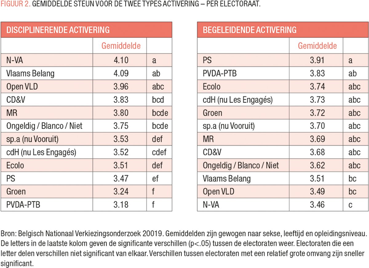 De kiezers van N-VA, Open VLD en Vlaams Belang zijn het minst gewonnen voor begeleidende activering.