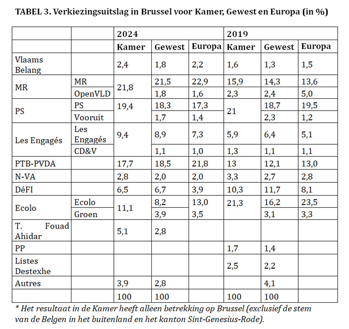 DE VERKIEZINGSUITSLAG IN BRUSSEL