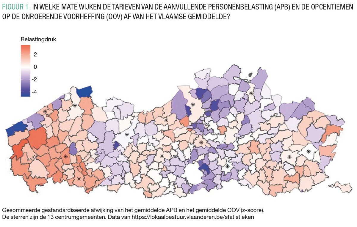 We kunnen de billijkheid van de verdeling ook op een andere manier inschatten zonder netelige, politieke verdelingsvraagstukken aan te snijden. Daartoe vergelijken we de belastingtarieven die gemeenten hanteren. De redenering van deze analyse is als volgt. Lokale besturen krijgen inkomsten uit Vlaamse subsidies en fondsen, maar het grootste deel van de inkomsten komt uit lokale belastingen. De tarieven van deze lokale belastingen hebben de gemeente zelf in handen. Dit is de knop waaraan de gemeente kan draaien als een begrotingstekort dreigt. Een gemeente kan niet bij Vlaanderen aankloppen. Wel kunnen ze de belastingtarieven verhogen. Andersom is het ook zo dat lokale besturen graag de belastingen zullen verlagen wanneer de begroting dat toelaat.