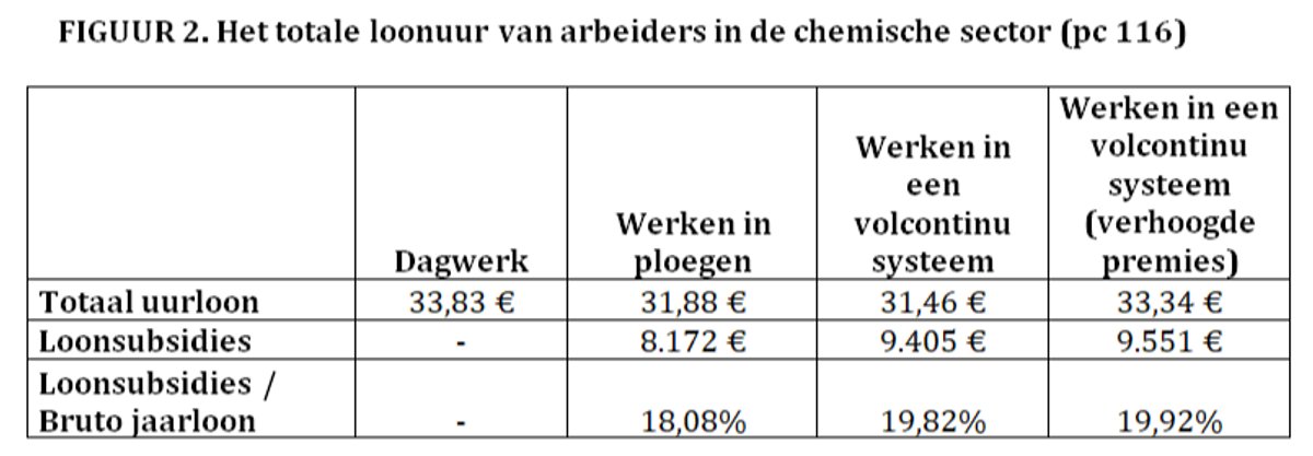 Om deze vraag te beantwoorden, hebben we het totale uurloon van arbeiders in de chemische sector met verschillende arbeidsregelingen vergeleken, rekening houdend met de looncomponenten van paritair comité 116 en de loonsubsidies. We hebben ook de volgende gegevens vastgesteld: